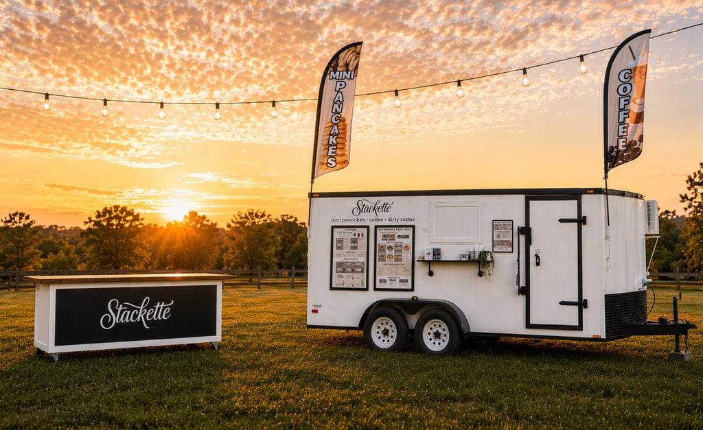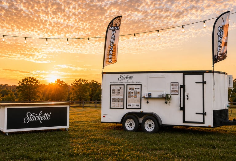 Gourmet mini pancakes and signature coffee served fresh from the Stackette trailer.