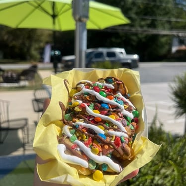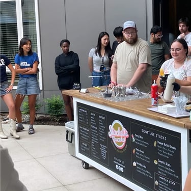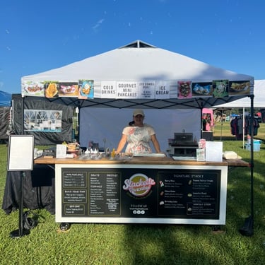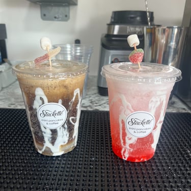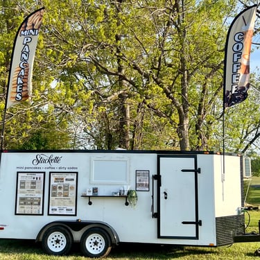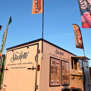 Gourmet mini pancakes and signature coffee served fresh from the Stackette trailer.